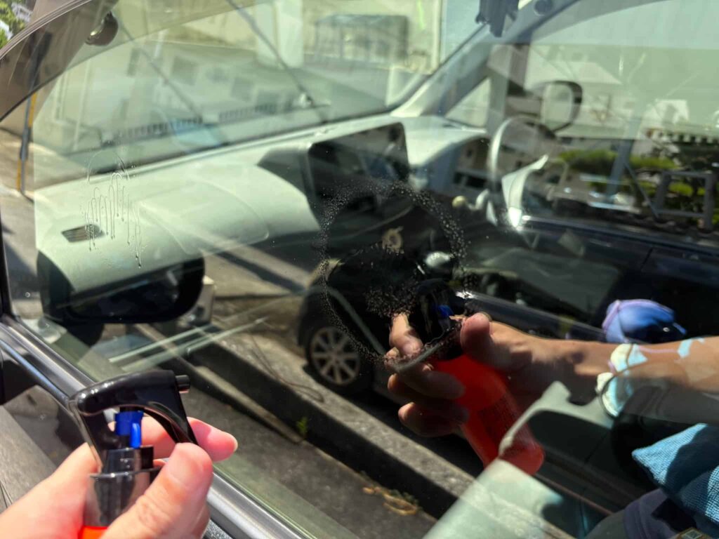 1.ガラス面を洗車でキレイにします。(先程と同様)